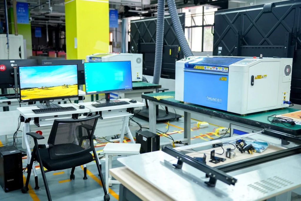 本次竞赛强调动手实践,要求学生在现场完成智能作品的搭建。雷宇教育提供的激光加工设备成为众多队伍实现创意落地的“利器”。