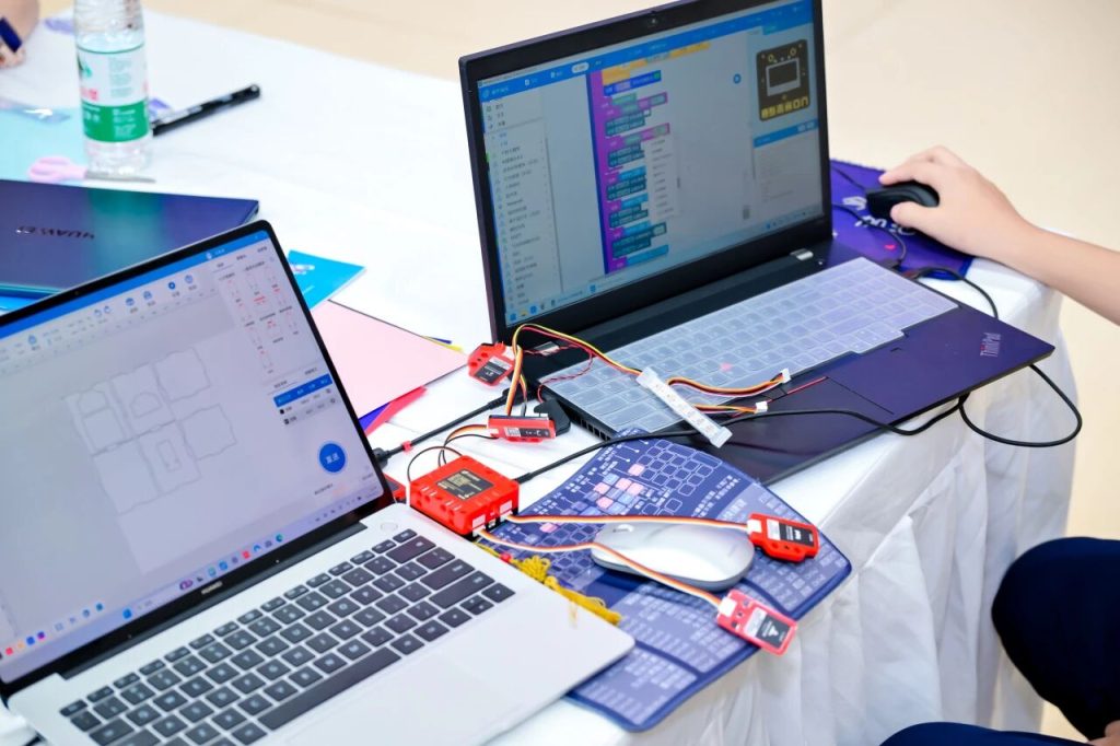 赛中,他们及时提供设备操作支持,有效降低了学生在技术实现上的难度,让大家能更专注于作品的功能创新与逻辑构建。