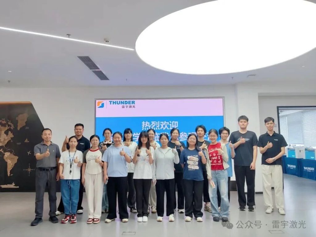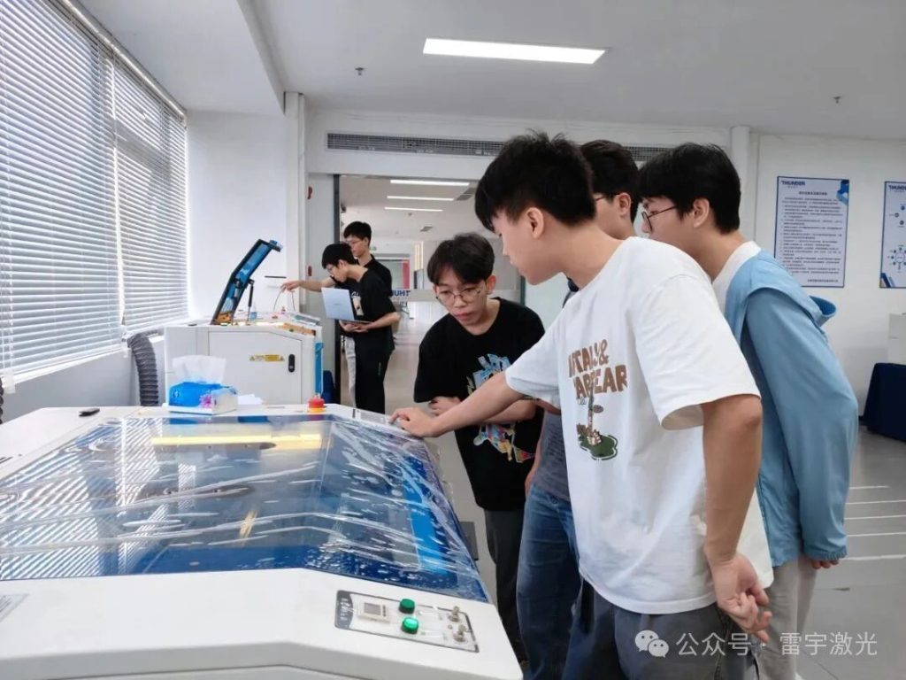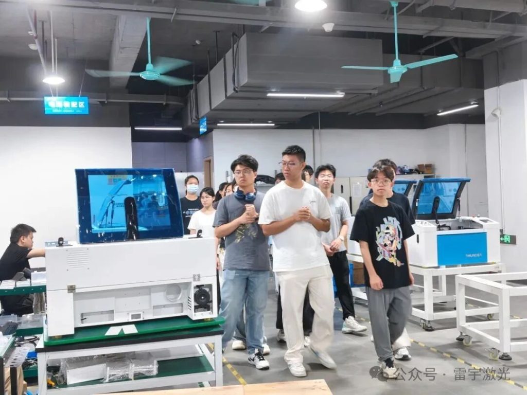 在陈老师的引导下,师生们依次走进雷宇总部的核心功能区,通过近距离观察与互动,全方位感受激光技术的魅力。